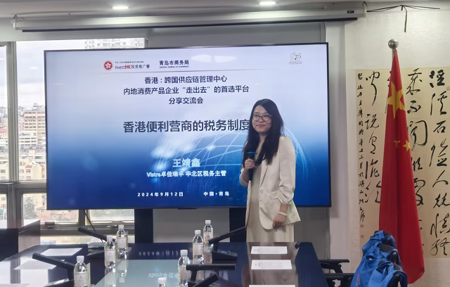 會(huì)議由青島市商務(wù)局黨組成員、副局長(zhǎng)李鋒先生致歡迎詞。隨后,香港特區(qū)政府投資推廣署上海辦事處總監(jiān)林景富先生、香港特區(qū)政府投資推廣署總裁(消費(fèi)產(chǎn)品)梁耀云先生以及RICHFUL瑞豐華北區(qū)稅務(wù)主管王靖鑫女士,先后圍繞”香港的營(yíng)商優(yōu)勢(shì)”、“香港消費(fèi)品市場(chǎng)的現(xiàn)況和機(jī)遇“及“香港便利營(yíng)商的稅務(wù)制度”等三大主題進(jìn)行了解讀和深度分析,分享實(shí)踐經(jīng)驗(yàn)。