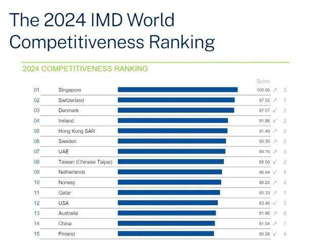新加坡擁有高度發(fā)達的自由市場經濟,根據今年6月18日瑞士洛桑國際管理發(fā)展學院(IMD)發(fā)布的《2024年全球競爭力年報》,新加坡憑借卓越的表現,在全球最具競爭力國家的排名中榮登榜首,成為全球最具競爭力的經濟體。