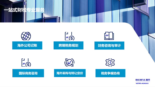 RICHFUL瑞豐財(cái)稅交付服務(wù)團(tuán)隊(duì)基于其全球服務(wù)網(wǎng)絡(luò)以及豐富的實(shí)務(wù)經(jīng)驗(yàn),協(xié)助不同國(guó)際化階段的中國(guó)企業(yè)結(jié)合戰(zhàn)略、商業(yè)、法律、合規(guī)等綜合因素,幫助企業(yè)在海外發(fā)展進(jìn)程中作出最優(yōu)化的稅務(wù)考量。