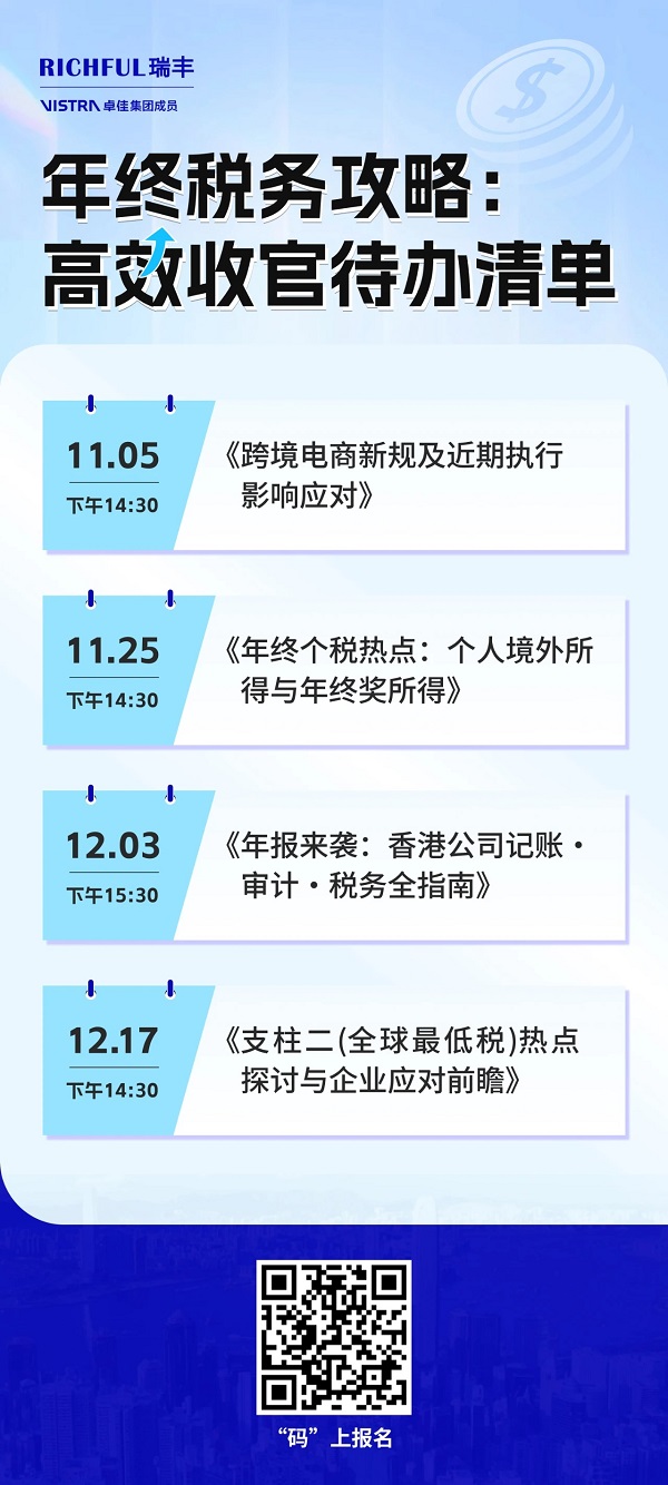 “年終稅務(wù)攻略:高效收官待辦清單”系列網(wǎng)絡(luò)研討會持續(xù)進行中,首場已圓滿落幕,干貨滿滿,好評如潮!第二場即將開啟,助你系統(tǒng)梳理關(guān)鍵議題,為2025年穩(wěn)健發(fā)展夯實基礎(chǔ)。