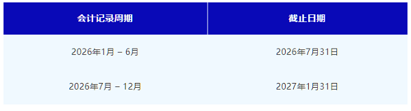 1. 半年度會(huì)計(jì)記錄 (Bi-annual accounting records) – 上半年截止于七月,下半年截止于次年一月